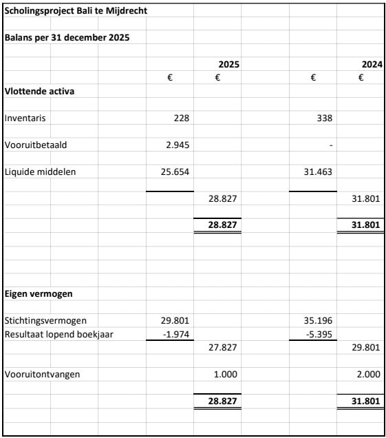Negatieve exploitatie 2025 komt ten laste van het positieve Stichtingsvermogen.